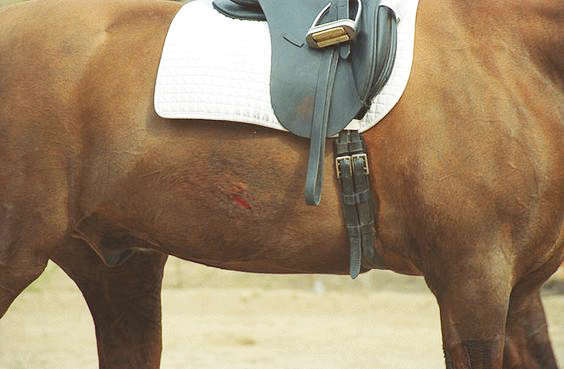 The FEI dressage blood rule states, “If the Judge at C suspects fresh blood anywhere on the Horse during the test, he will stop the Horse to check for blood. If the Horse shows fresh blood, it will be eliminated. The elimination is final. If the Judge through examination clarifies that the Horse has no fresh blood, the Horse may resume and finish its test.” ( Article 430.7.6 FEI Dressage Rules)